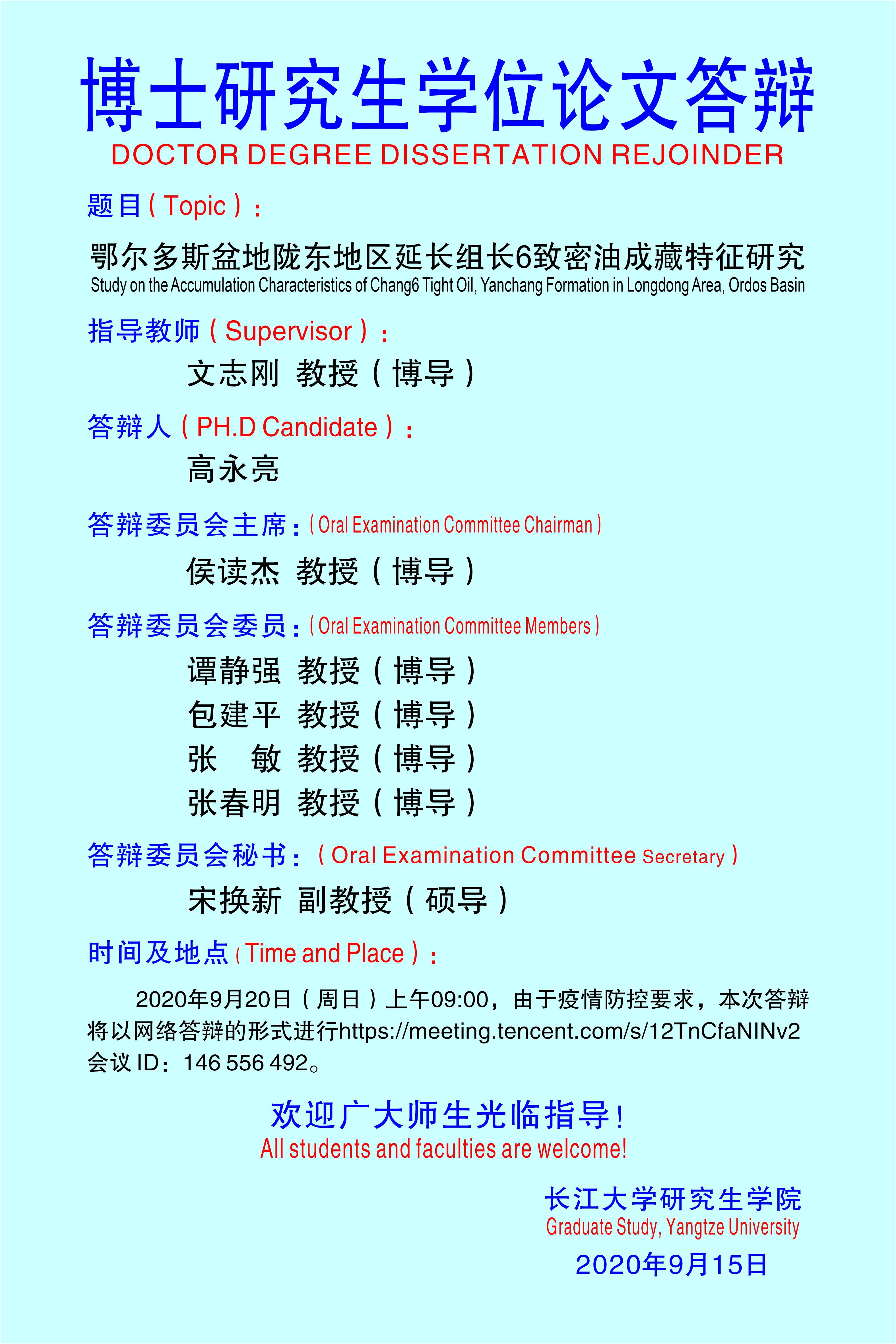开云官方网页版官网2020年9月博士研究生毕业答辩安排