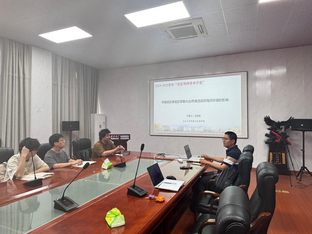王张虎老师以《华南地区寒武纪早期火山/热液活动对海洋环境的影响》为题,首先系统梳理了埃迪卡拉—寒武纪过渡期南华盆地的古地理格局演变及沉积相带的展布特征,揭示了构造活动对盆地演化的深远影响。随后通过有机质母质来源分析、水体氧化还原状态评估、水体滞留程度判别以及初始生产力重建等多种地球化学参数,深入探讨了不同沉积环境下有机质富集的成因模式。除此之外,王老师分享了近年来关于示踪火山/热液活动及古盐度变化的新型地球化学指标的研究进展,并展示了这些指标在寒武纪早期古海洋环境重建中的应用实例与最新成果,为寒武纪地质演化研究提供了新的思路和方法。