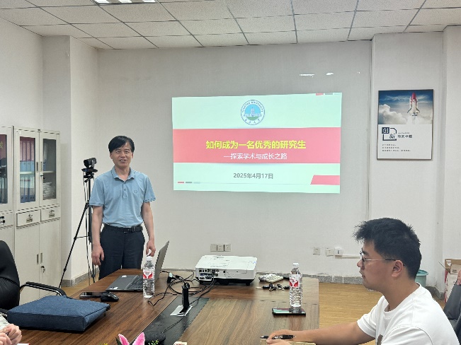 活动中,何文祥教授以《如何做一个优秀的研究生》为题展开讲座。何教授首先关注研究生的心理健康,剖析学业竞争、科研任务等带来的心理压力,以及由此衍生的抑郁、焦虑等常见心理问题,给出积极自我暗示、合理情绪宣泄等调适方法。在健康管理方面,他强调合理饮食、充足睡眠等生活方式的重要性,提醒同学们预防久坐、视力等健康问题。