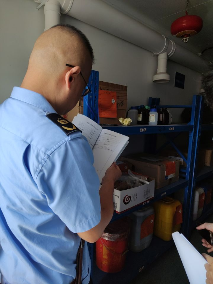 9月26日上午,蔡甸区环保部门检查工作组莅临我院开展实验室危险化学品安全检查工作。武汉校区安全与后勤保障处处长邓平,资环学院实验室相关人员参加检查活动。检查查看了危化品存储间、废物处置间。