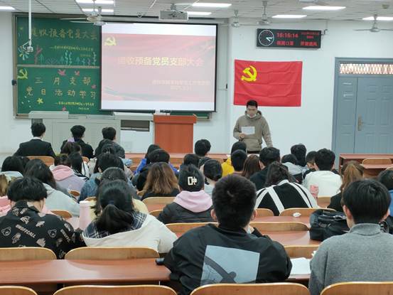 (通讯员 赵星雨/文 邱语嫣/图)为提高党员的党性修养,确保新发展党员的质量。2022年3月31日下午4点半,开云官方网页版官网学生工作党支部接收预备党员大会于武教B103举行,本次大会接收闫宣允同志为中共预备党员。开云官方网页版官网学生辅导员黄鹏老师出席本次会议,党支部副书记贾一凡主持会议,逐一清点到会人数并宣布大会议题。