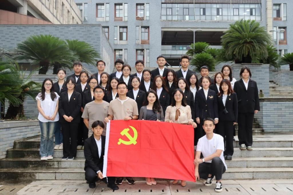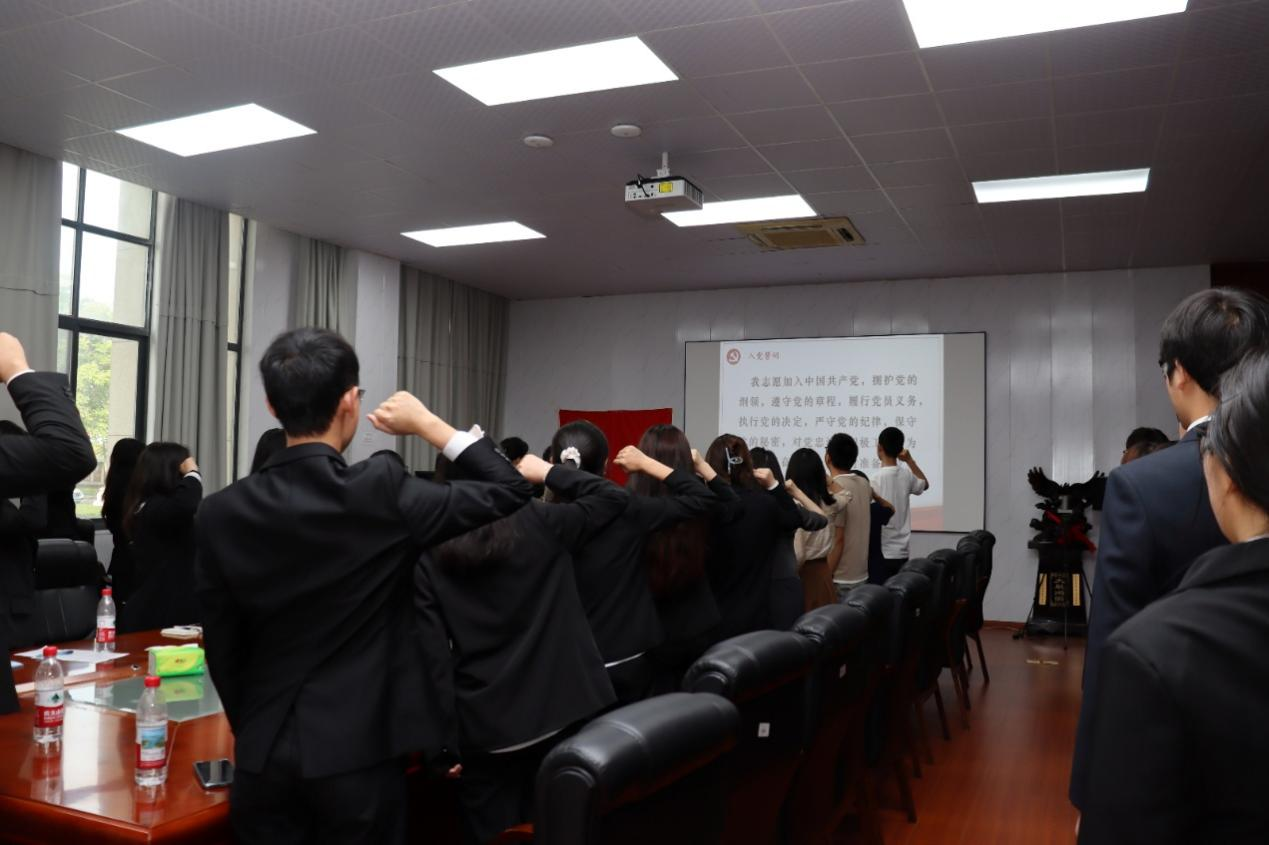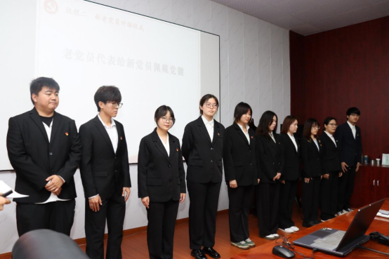 会议伊始,黄宇同志带领全体党员学习《中国共产党章程》第七章。随后,举行“新老党员对接仪式”,由毕业生党员为新发展的党员佩戴党员徽章。
