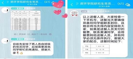 (通讯员 黄谦 图/文)疫情就是命令,防控就是责任。当前国际疫情仍然严重,近期国内多个省份出现新增病例,为了进一步做好学生日常管理工作,强化常态化疫情防控工作,保障广大学生的健康安全,开云官方网页版官网研究生党支部全体党员都积极参与到日常防疫工作中,做好每日体温打卡、进出校园自觉佩戴好口罩、非必要不外出等。近日学院有两名研究生,因科研出差途径疫情中高风险地区,返校前积极配合学院疫情防控工作,提前做好相关核酸检测。学生返校后,学院研究生辅导员严丽萍老师第一时间号召研究生党员同志做好返校人员隔离工作,安排党员同志帮助两名隔离的同学搬宿舍,做好隔离工作。面对疫情防控,学院研究生党员同志们积极参与其中,司锦同志带领黄谦、邓美玲等党员同志协助大家一起把此次疫情隔离工作做好,每天都安排有相关党员同志给隔离的同学送餐、送“温暖”、进行日常体温检测,并做好疫情隔离期间的工作反馈,研究生党支部尽一切努力为隔离的两名学生服务,做到随叫随到,满足隔离同学的日常需求,关心学生的身心健康。