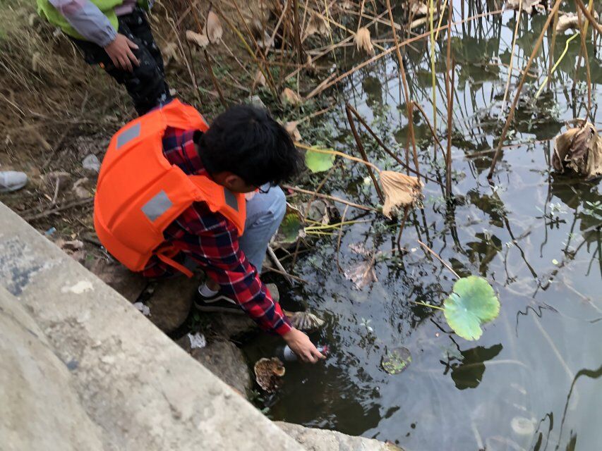 本次活动分为三个小组,一组同学负责清理道路上的各种垃圾,二组、三组的同学负责采集水样。首先出发的是一组的同学们,同学们手拿下发的垃圾袋仔细认真地清理沿途的各种垃圾。弯腰去捡垃圾只是一个很小的动作,可如果人人都献一份力,后官湖将会干净无比。