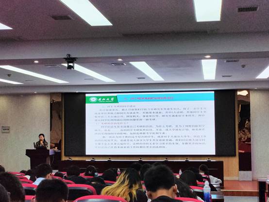 学院副书记范梅英老师详细分析了2022年的就业基本情况及就业形势,近几年,全球经济下滑,加上新冠疫情、中美贸易战的影响,大学生的就业形势严峻;同时通过丰富的数据、图表分析了2022年的考研情况及考研形势,研究生报考生人数逐年攀升,2022年研究生复试分数线普遍提升,复试录取、调剂都相对较难。她强调面临当前形势,只有做好充分的准备,才能脱颖胜出。