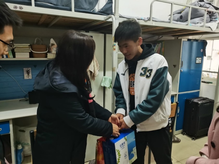 新学期的开始也是藏历新年的开始,2023年2月21日是藏历新年的第一天,对于两位藏族同学次仁桑珠和扎西来说,这是他们第一次在离家这么远的地方度过藏历新年。学院领导在了解情况后立即走访慰问两位藏族同学,为他们送上学院精心准备的新年礼物。