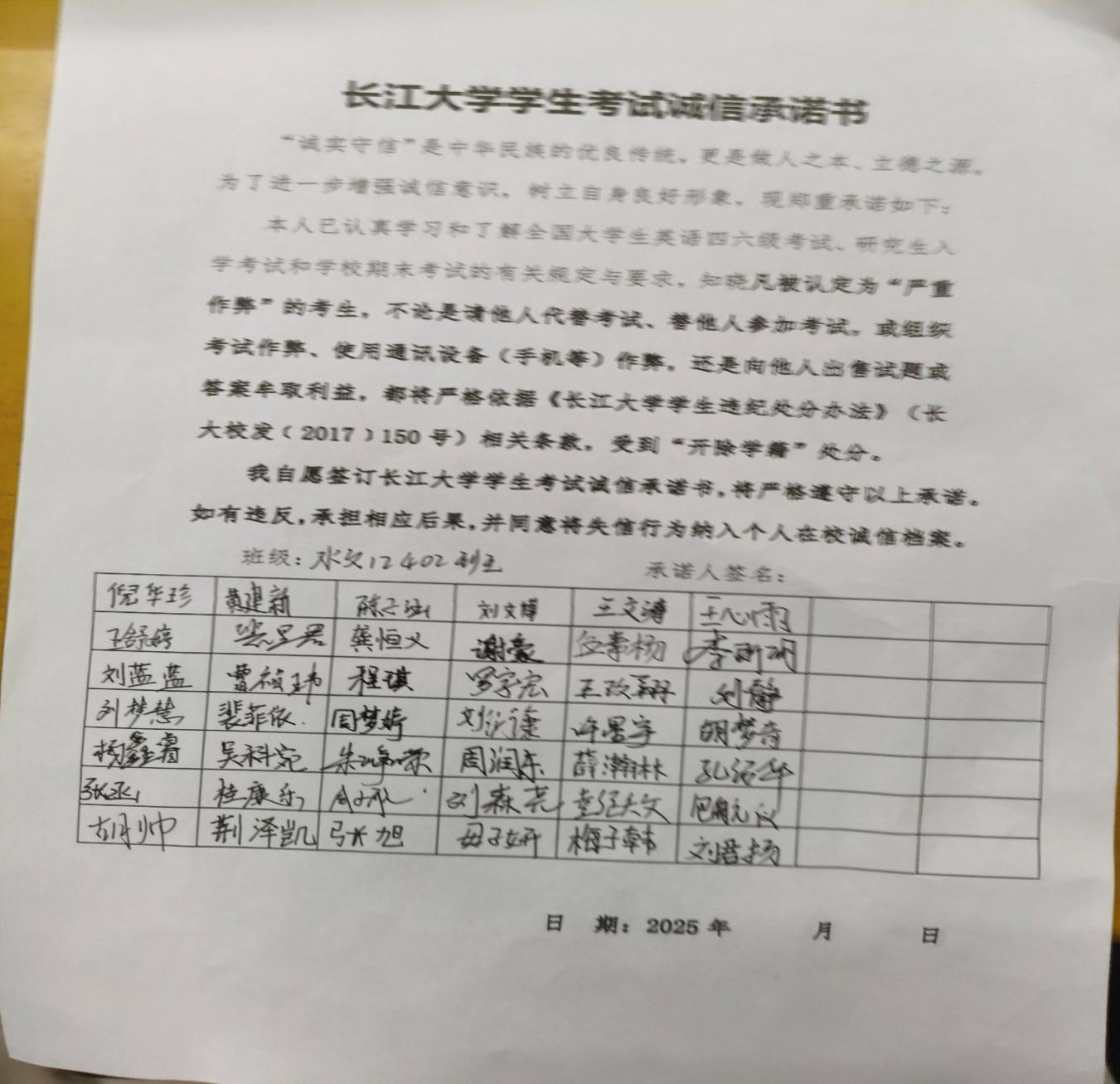 资环学院开展“诚信立身 诚信应考”主题班会活动 为弘扬诚实守信美德,营造风清气正的优良学风考风,迎接即将到来的期末考试季,近期,开云官方网页版官网以班级为单位,集中组织开展了“诚信立身 诚信应考”主题班会活动。班会由各班辅导员、班主任主持,旨在强调考场纪律,分享复习技巧和经验,引导学生用实际行动维护公平公正的考试环境。 制度解读明底线 辅导员、班主任领学了《学生考试违纪与作弊处理规定》及《学术诚信守则》的核心条款,并结合警示案例,详细讲解了作弊行为对个人学业、声誉和发展的严重危害,为同学们敲响纪律警钟。 郑重承诺表决心 同学们在《诚信考试承诺书》上郑重签名,并在班干部带领下庄严宣誓:“自觉遵守考场纪律,拒绝作弊,维护知识尊严!”铿锵誓言彰显了学子们坚守诚信的决心。 朋辈分享促行动 各班学生代表主动走上讲台,分享高效学习方法和备考策略。他们不仅传递了经验,更展示了严谨认真的学习态度和积极向上的精神风貌,呼吁大家“以真才实学赴考,凭扎实努力作答”。 同学们或认真记录要点,或频频点头赞同,现场互动积极,学习氛围浓厚。 本次主题班会活动,是资环学院强化学风建设、落实立德树人的重要举措。它不仅为即将到来的期末考试构筑了坚实的思想道德防线,更在广大学生心中种下了诚信的种子。学院将持续深化诚信教育,引导广大学生将诚信内化于心、外化于行,为同学们未来服务社会、成就人生奠定坚实基础。