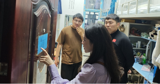 副书记刘娥一行先后走访了学院各年级学生宿舍,逐间核查宿舍实际居住人员与登记信息是否一致,严格排查是否存在学生未报备私自外住的情况。检查过程中,辅导员认真比对宿舍门牌信息与入住学生名单,详细记录异常情况,并建立问题清单,确保后续整改到位。针对部分宿舍存在的物品摆放杂乱、地面清洁不彻底、存在异味等问题,检查组现场提出整改意见,要求相关宿舍立行立改。检查过程中,老师与同学们进行了密切地交流,了解同学们日常生活的同时激励大家抓好宿舍“第二课堂”,课余时间做好学习任务的安排。最后,副书记要求辅导员队伍以此次摸排为契机,建立常态化检查机制,通过主题班会等引导学生增强安全意识、责任意识和集体意识,共同维护安全文明的宿舍环境。