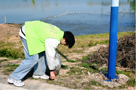 巡湖护碧水,双城接力书写生态答卷。3月20日下午,武汉校区后官湖畔春意盎然,40名志愿者身着统一服装,手持垃圾钳与环保袋,沿绿道展开“地毯式”清理。塑料瓶、烟头、废弃包装等散落垃圾被逐一拾起,分类后投入指定回收点。有位志愿者感叹:“弯腰捡起的不仅是垃圾,更是对生态的敬畏。”3月22日,荆州校区志愿者队伍奔赴荆州古城国家湿地公园,在碧水长堤旁开展巡湖行动。学生们结合专业水质检测知识,对湖岸环境进行初步评估,并向游客普及湿地保护的重要性。“用脚步丈量生态,用行动守护家乡”,成为两地志愿者的共同心声。