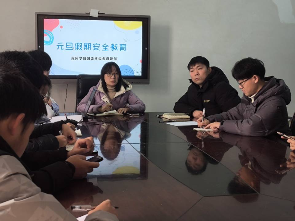 (通讯员 葛鹏飞/图 姚雨辰/文)12月28日上午12:00,于华林八栋三楼会议室,资环学院召开元旦假期安全教育会议,由学生事务办公室主任李春花老师主持,学生辅导员郭政老师,我院本科生及研究生各班安全员委员参与,主要传达元旦假期安全问题,关注学生身心健康。