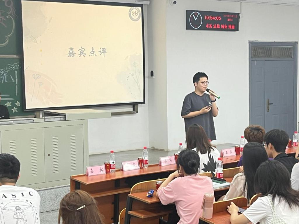 答题环节结束后,进入嘉宾点评环节。第十届资环学院团委学生会主席,傅浩学长表示对初赛非常满意,无论是同学们的表现还是现场的气氛,处处都体现着积极向上的学习氛围。