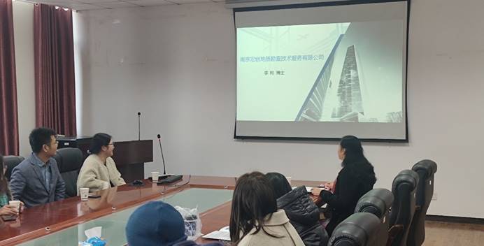 会议伊始,由南京宏创地质勘查技术服务有限公司李经理,南京大学博士,为我院毕业生进行了求职就业指导获得同学们得阵阵掌声,随后李经理又进行了企业介绍,李经理先后向同学们介绍了企业的主要发展方向与企业的历史以及专业招聘要求,让同学更好地了解企业的基本情况。在谈及企业优势时,他指出,该企业与其他同类企业相比,所空缺的岗位更多,毕业生入职以后进入实验室,有专门的师傅来带领,同学们能够更容易适应企业项目的需求,单位也能够为同学们提供更多的晋升机会。同时在工作之余,企业也为职员们提供了丰富的娱乐活动,比如运动会,团建等,让员工们能在愉悦的氛围中开心地工作。