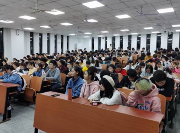 此次讲座,范梅英老师向大家讲述了防火、防盗、防骗、防疫、交通安全、食物安全和请假离校七个方面的问题。在讲到防火问题时,范梅英老师利用现场的灭火器向同学们详细讲述其使用方式,以及使用时需要注意的问题。通过列举高校真实案例、播放典型案例视频等方式,她指出了大学生防盗意识淡薄,容易轻信他人,导致钱财损失,人身安全遭到威胁的现状。同时,她还向同学们简单介绍了窃贼偷盗的惯用伎俩,希望同学们注意宿舍防盗,时刻保持警惕,不轻易同意陌生人随意进出房间。对于安全防疫问题,范梅英老师意味深长的说:“要求大家非必要不要外出,离校一定要办理请假手续,大家要勤洗手,寝室常通风,出入佩戴口罩,让我们一起守护这来之不易的抗疫成果。”