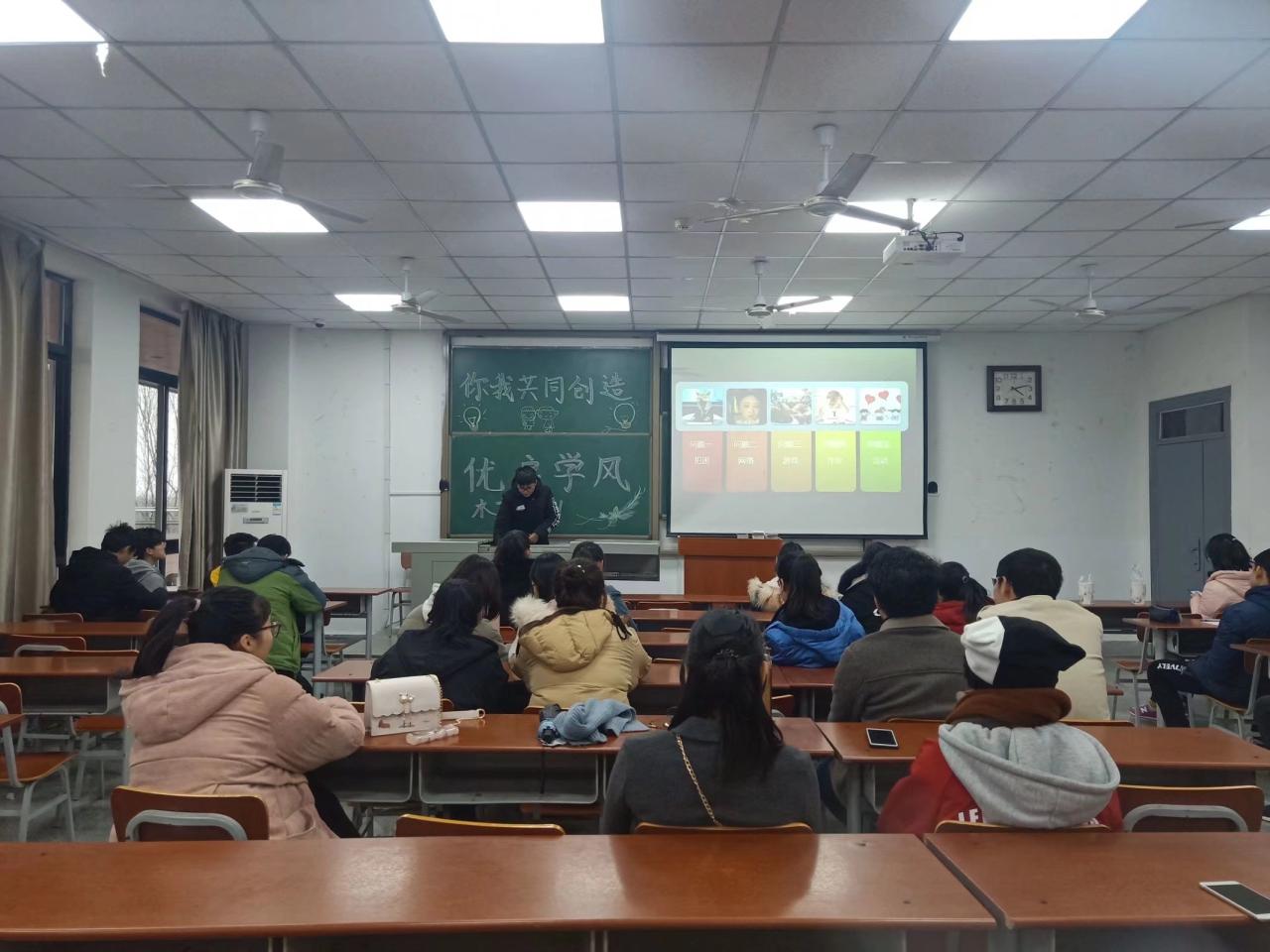 李春花老师提出,班风兴则学风兴,学风兴则校风兴。学风建设不应该仅仅是一段时间的事情,而是应该每天都需要面对的事情。在良好学风的基础上,同学们更应该在有兴趣的学科方向上,深入学习研究,发散思维,参加各类科研、创新、学科竞赛。春花老师还提到,学院老师也会全力支持参与帮助同学们参加双创项目,对于在创新创业竞赛中表现出色的同学还要给予一定奖励。