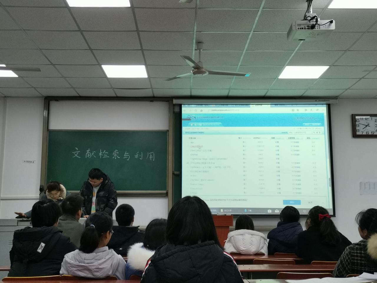 (通讯员 胡文彬 图/文)为了让我院本科生更多的了解科学研究,提高同学们信息检索与分析的能力,有效地利用我校图书馆及馆际相关图书信息资源。资环学院于2019年11月27日下午7:00在武教A-308教室开展了专业论文培训——文献的检索与利用的讲解活动。本次活动由“资环学院双创委员会”培训负责人皮文向同学们介绍相关技术信息,资环学院各年级派出代表参加了此次活动。