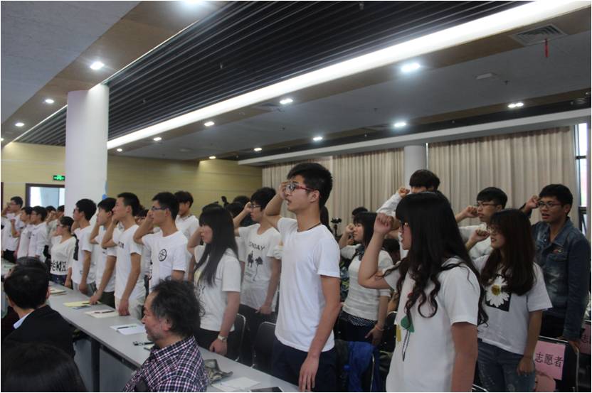 副校长郭海敏致辞,对国家环境保护部生态司处长、中法武汉生态示范城管委会副主任王捷的光临表示欢迎。紧接着,开云官方网页版官网常青生态志愿者协会举行了简单的启动仪式。蔡甸区湖泊管理办公室喻志勇主任对蔡甸区湖泊整体规划做了简单陈述,倡议师生们利用媒介宣传“水环境保护”,加入志愿队伍,促进开展针对“水污染”的调查、治理与研究活动。常青生态志愿者代表梁宇涵上台表达了自己对环境保护的决心与信念。王捷处长为常青志愿者代表授旗。协会全体志愿者进行了宣誓。