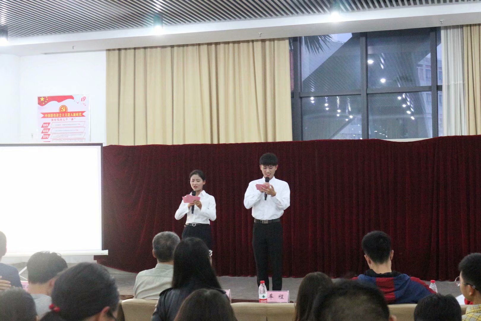 节目表演完毕后,由朱思源书记和田兴民学长为我们进行了点评。在本次活动中,同学们不仅展现了自己的才华,更展现出了当代大学生蓬勃朝气的精神面貌。也正是因为他们台下利用碎片时间一次又一次的排练,才有了今日台上的精彩。