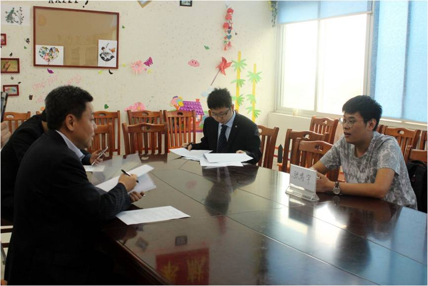 本次招聘共分为两部分:55分钟的笔试和面试环节。华人IT企业信用协会会长金万哲说,鉴于武汉校区学生的专业并非面向IT行业,因此我们决定首先进行55分钟的IT适情考试,来考察应聘者是否适合IT行业以及他们对个人电脑的使用能力。在面试环节,万金哲会长作为主考官对面试者进行了提问。针对“是否愿意留在日本工作”、“在大学期间,在计算机方面取得了哪些成绩”和“是否能接受IT行业的工作强度”等问题,应聘者一一作答。其中,参加应聘的李官智列举了自己自学C语言,研究安卓系统开发方面的学习,表现出对IT行业浓厚的兴趣。