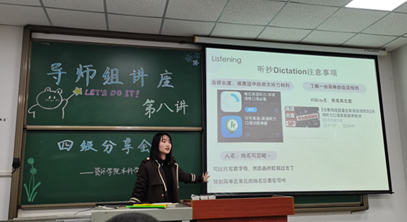(通讯员 李如意 邱语嫣 杨帆 万紫韬/文 万紫韬 杨雨轩/图)为了引导大家更有效率地,更有目的地进行四级备考,2021年3月21日晚七点,资环学院学生工作党支部开展了主题为“四级分享会”的导师组讲座第八讲。该讲座由林舒敏学姐、田润丰学长、廖靖倩学姐主讲,全体环科类20级同学参加。