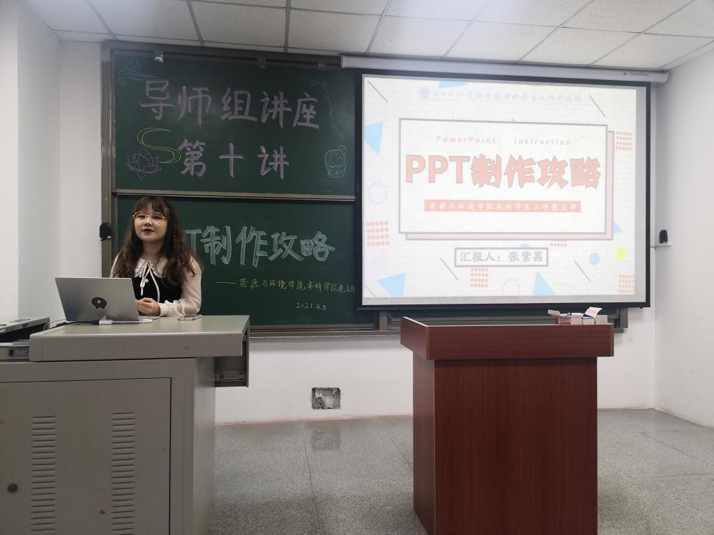 (通讯员 李如意)为了让刚开始接触PPT制作的大一学生能更加的得心应手,少走弯路。2021年4月8日晚7时整,资环学院本科学生工作党支部开展了导师组讲座第十讲。讲座由导师张紫茜同学为大家宣讲。资环学院全体大一学生参加。