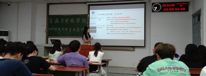 此次宣讲,大四同学们的考研经验分享干货满满,在全面的信息交流与融洽的现场气氛中,资环学院大三学子们收获颇多。相信他们在勇于付出,科学备考后都能如学长学姐们的祝福一般“一研为定”,“一战成硕”。