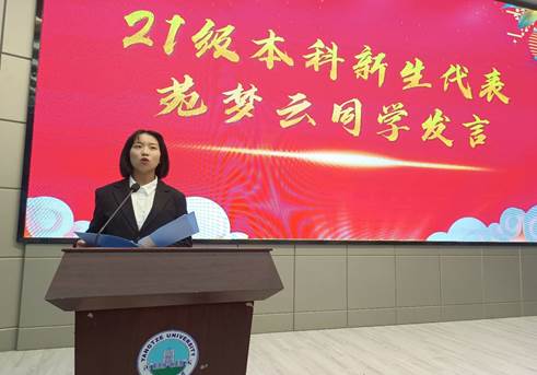 随后,2019级本科学生代表傅浩,2021级本科新生代表苑梦云,2021级研究生新生代表刘于民分别发言。傅浩和刘于民向大家分享了自己大学生活的酸甜苦辣,根据自己的经验向新生提出了一些建议。苑梦云满怀信心地向大家表达了自己对大学的憧憬以及给自己定下的目标。掷地有声的文字,激情澎湃的演讲,点燃了新生的雄心壮志。疾风知劲草,在今后的大学生活中,唯有满怀希望,认真做好手上的每一件事情,才能有所收获,不负韶华。