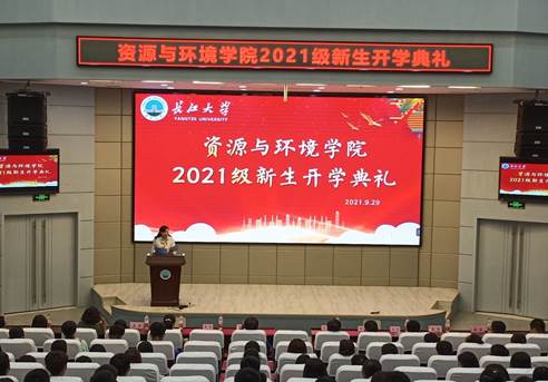 (通讯员 杨雨轩 图/文)知音湖畔扬风采,资环学子展宏图。9月29日18:30,资环学院2021级新生开学典礼于石油科技大楼学术报告厅隆重举行。本次典礼由党委副书记范梅英主持,资环学院院长文志刚、副院长赵红静、副院长徐耀辉、贺美教授、罗杰教授、胡海燕教授、那金老师等教师代表、各新生班级班主任、团委书记严丽萍、学生事务办公室主任李春花、学生辅导员黄鹏等老师出席,全体2021级新生到场。