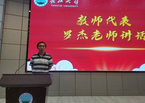 “要做一个有理想、有目标的大学生”,我院优秀教师代表罗杰教授对刚踏入大学的新生们提出要求,他鼓励新生为自己制定恰当的目标,诚信做事,真诚待人,拥有一个丰富快乐的大学生活。