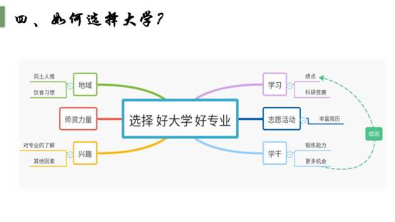最后部分,冯思瑶向同学们分析了同学们关注度最高的问题,“如何选择大学”,她从地域、专业及师资力量三个方面分析了该如何抉择自己的大学,并依据受欢迎程度,将当下专业分成了四个梯队,并分别讲述了每个专业的就业前景等信息。紧接着她向同学们分享了自己的大学生活,并将自己高中和大学的状态进行了对比,同学们纷纷表示受益匪浅。在讲座的最后冯思瑶同学祝愿同