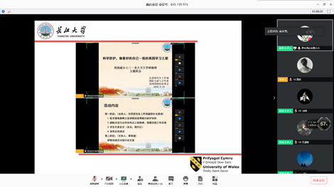 (通讯员 王涵植)为拓宽学生的国际视野,丰富学生的科研生活。4月15日上午10点我院线上开展赴英研修班留学生活分享会。本次分享会由资环学院团委书记严丽萍主持,学院院长文志刚,党委副书记范梅英与会,17-19级全体研究生参加会议。
