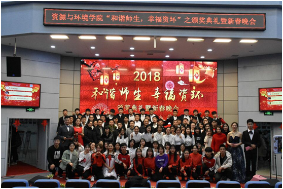 晚会进行了三轮颁奖,分别对2018年度评选出的“十佳寝室”、“幸福班级”和“资环之星”进行表彰。其中“幸福班级”、“资环之星”是资环学院在班级和个人层面设立的学院大奖,旨在树立标杆、发挥榜样的示范引领作用。获奖班级和个人获得荣誉证书和奖金。