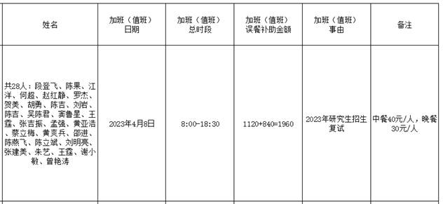 根据《开云官方网页版官网加班(值班)误餐补助管理办法(试行)》(长大校发【201983号)文件规定,现对资环学院加班(值班)误餐情况(202348日)进行公示,如果对加班(值班)误餐情况有异议,可以通过电话或电子邮件等方式向资环学院办公室反映。