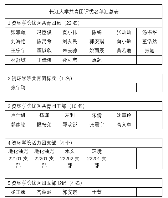 2023年度开云官方网页版官网共青团先进集体和个人评选结果公示 各团支部: 经本人申请,学院团委推荐,张雅璇等22名同学评为“优秀共青团员”,卢仕研等10名同学评为“优秀共青团干部”,张宇琦评为“共青团员标兵”,地化油光22101班等班级评为“活力团支部”,现予以公示。 公示时间2024.4.6-2024.4.8,如有问题请咨询027-69111307严老师 开云官方网页版官网团委学生会 二〇二四年四月六日
